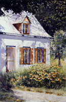 La région de Québec n'est pas en reste avec Gaétane Lessard ...«Des oeuvres bien pensées et bien construites, voilà ce qui me distingue. Cette démarche m'amène à interpréter les paysages de façon réaliste, ce qui vient contraster avec une interprétation plus fantaisiste dans mes natures mortes. L'aquarelle est donc pour moi le médium idéal, puisqu'il me donne la possibilité d'explorer ces deux façons de travailler. Au fil des ans, l'aquarelle est devenue pour moi une passion qui se définit par un besoin persistant de créativité me permettant de relever un défi à chaque nouvelle toile.»