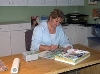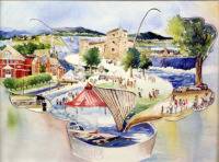 Comme je souhaitais poursuivre un de mes objectifs : faire voyager les oeuvres que je peins des écluses sur la rivière Richelieu et du Canada, lesquelles m'ont déjà valu : une bourse, un 1er prix à l'Académie Internationale des Beaux-Arts du Québec et qu'une de mes oeuvres fasse partie de la collection d'oeuvres d'art de l'Assemblée Nationale. Mes recherches m'ont conduit à une pontière ayant vécu à Chambly et oeuvré de 1863 à 1883, reprenant le poste de son défunt mari....Charlotte Dubuc. J'y représente des scènes des écluses sur une période de 150 ans.