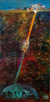 Humberto Pinochet tient à partager ses sentiments face à ce sauvetage exemplaire, «Nous ne pouvons que saluer à distance, le courage dont a fait preuve ces hommes.» Voici le tableau peint la nuit dernière par le maître Humberto Pinochet en hommage au courage des 33 mineurs chiliens ensevelis vivants depuis le 5 août 2010. ...«la nacelle a ramené à la surface les 33 mineurs de San José qui ont passé 69 jours à près de 700 mètres sous terre. » L'ascenceur le plus célèbre du monde a été mis au point par la marine chilienne, le cylindre métallique fait 4 mètres de long et 53 centimètres de diamètre et ressemble à s'y méprendre à... une cage.