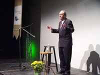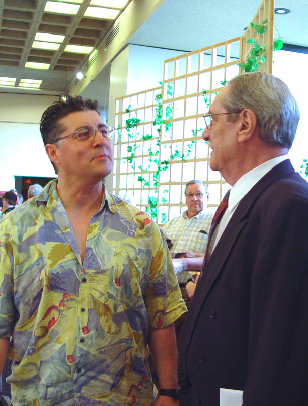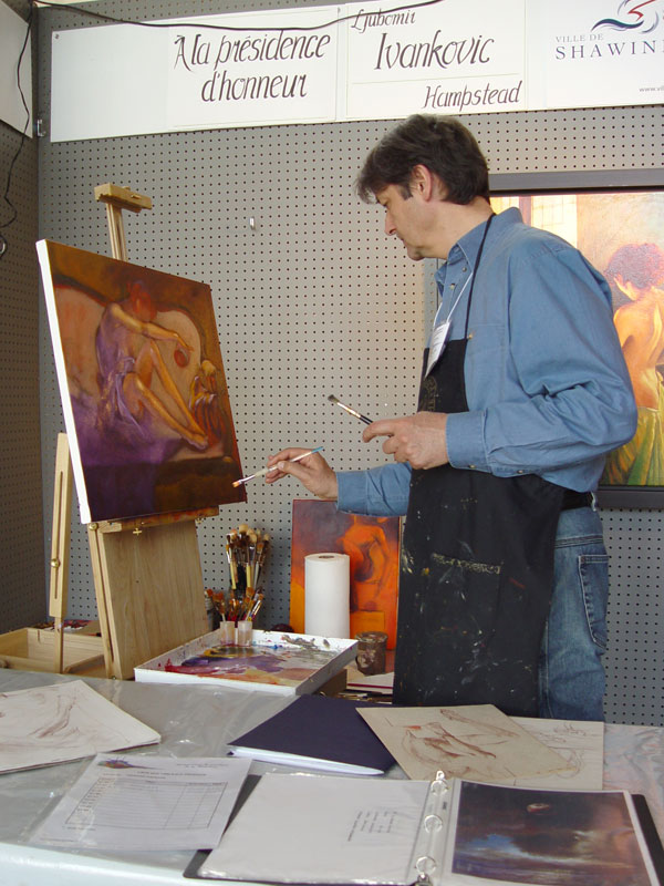 Soulignons que le Prix du public a été attribué à Daniel Vincent, artiste professionnel, membre de l'Académie Internationale des Beaux-Arts du Québec. Madame Cécile Fortin de Trois-Rivières a gagné la toile officielle «La couleur bleue» créée par l'artiste Ljubomir Ivankovic, président honoraire du symposium et lui aussi membre de l'AIBAQ. Les ateliers présentés par Denis Jacques, académicien (AIBAQ) et de Ljubomir Ivankovic ont connu un franc succès. Une autre membre de l'Académie, Juli Lesage, participait au symposium et s'est gentiment prêtée  aux questions de Louis Bruens comme d'ailleurs tous les membres présents de l'Académie. Vous voyez ci-près Juan Cristobal artiste-participant, ainsi que plusieurs artistes associés à l'Académie  se sont déplacés, parfois de très loin, pour assister à la conférence de Louis Bruens. Pierre Labrecque, Jean Letarte, Monique Trempe, Sonya Michel, Diane Forest, Sylvain Béland, Martine Verreault, Jeanne Bournival et Suzanne Claveau. L'atmosphère créée par nos membres a été des plus réjouissantes. Les photos souvenirs du Symposium se trouvent dans l'album-photo, elles témoignent de l'ambiance qui a régné tout au long de cette festivité.