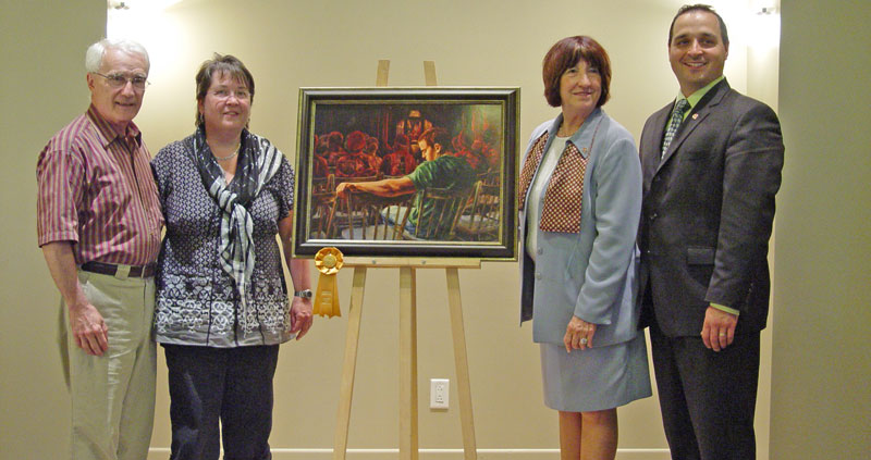 Cette oeuvre s'est vraiment démarquée et c'est avec maestria que Diane Forest a répondu aux critères du jury c'est-à-dire : l'originalité, la maîtrise artistique et le respect du thème. Pour cette -Grande Finale- une note presque parfaite lui a été accordée par les membres d'un jury composé de 8 professionnels et intervenants culturels : M. Jacques Goyette, président du Concours provincial et Vice-président du comité exécutif et président de l'Arrondissement du Vieux-Longueuil, M. Pierre Tardif, président du C.A. de la Caisse Desjardins de Longueuil et président du Conseil régional des Caisses Desjardins de la Rive-Sud de Montréal, Vice-président du C.A. de la Fédération des Caisses Desjardins du Québec, M. Bernard Houle, président du C.A. de la Coopérative funéraire de la Rive-Sud de Montréal, Mme Éliette Caron, directrice en développement des affaires, assurance directe et assurance crédit, Desjardins Sécurité financière, Mme Anne Drouin, artiste-peintre professionnelle, professeure de peinture et présidente du comité culturel de la MRC La Jemmerais, M. Jean-Pierre Coallier, animateur et directeur général de la station Radio Classique 99,5FM CJPX, M. Normand Caisse, conseiller municipal et président de la Commission des arts, de la culture et du patrimoine de la ville de Longueuil et Mme Luce Des Aulniers, anthropologue, département de communication social et publique à l’UQUAM, spécialisée en étude sur le rapport des vivants avec la mort et les rituels funéraires, ONT PROCLAMÉ LE TABLEAU – « LÂCHER PRISE » - COMME GRAND GAGNANT DE CE CONCOURS PROVINCIAL